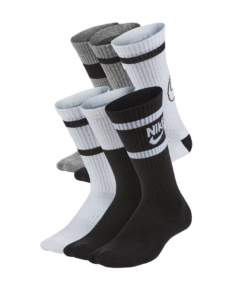 6 Paar Nike Everyday Cushioned Crew, Kinder Sportsocken, CK7302, schwarz/weiß