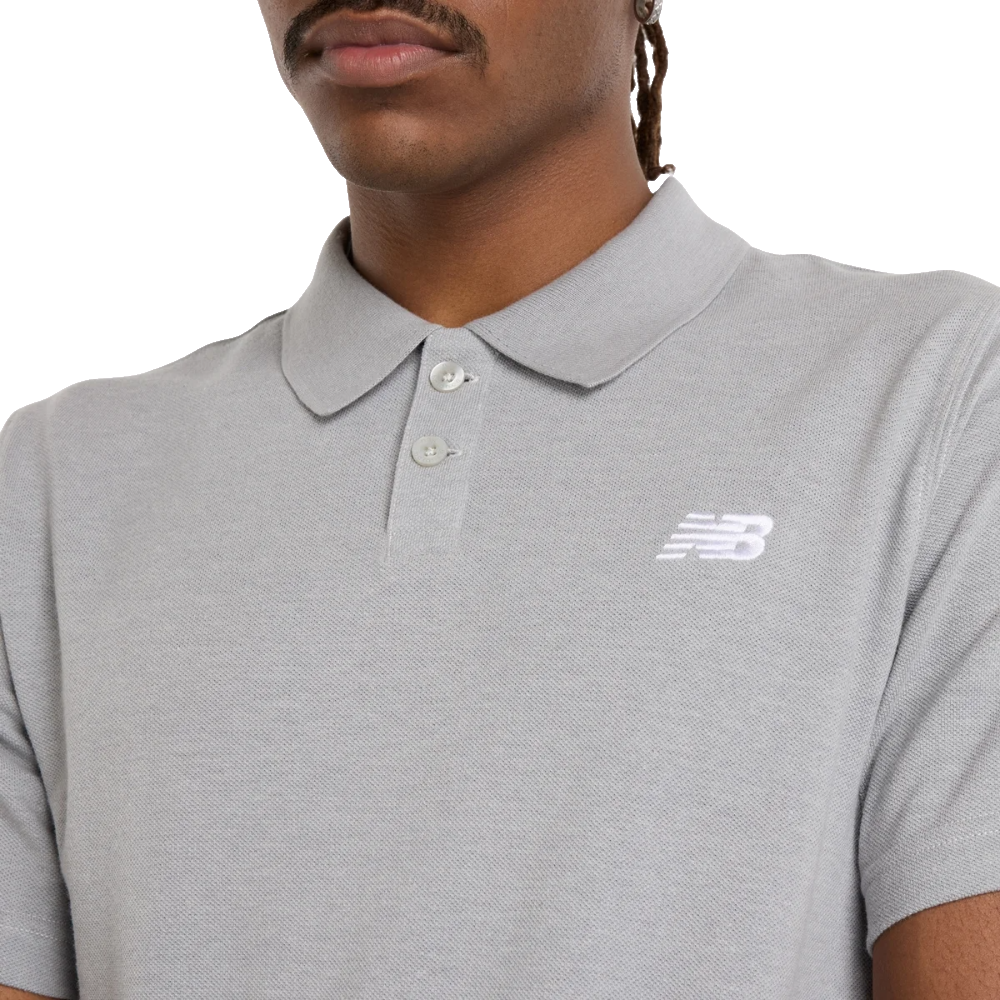 New Balance Cotton Pique Polo, Herren Poloshirt, grau